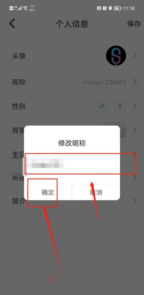 第四步:点击【昵称】,在弹出的页面输入昵称,最后点击【确定】即可,详见下图所示。