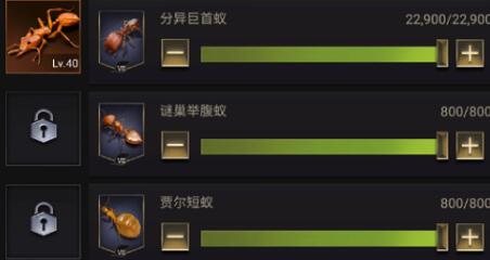 2、中期:结合能使用的特化蚁(优先能开6技能),上阵时尽量选择相同的兵种,例如近近近、近射射、运运运。能集中资源和时间去研究单兵种的进化,高进化的兵种效果远远高于未进化的兵种。