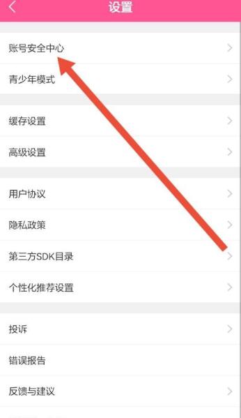 2、然后进入设置之后,点击账号安全中心。