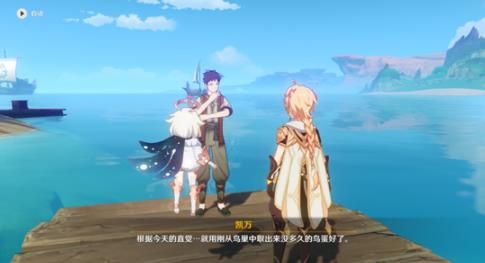 1、前往奥摩斯港口,找到凯万与之对话,我们要帮助他寻找富有灵性的材料来做鱼饵。