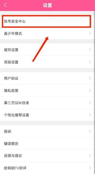 3、接着在设置界面中点击账号安全中心。