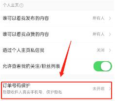 4、最后开启订单号码保护右侧开关即可。