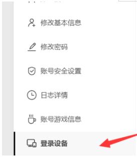 2、在通行证页面的左侧有多个功能选项,这里我们需要点击左边的登录设备;