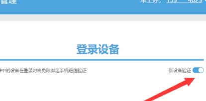 3、进入到新设备验证页面,有一个新设备验证的提示,点击滑动按钮将其关闭;