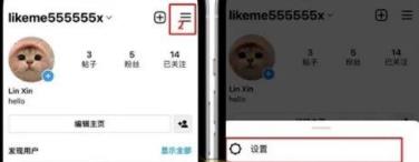 1、打开ins页面,点击下方菜单栏最右侧的个人信息页面,点击上方更多符号(≡),点击“设置”