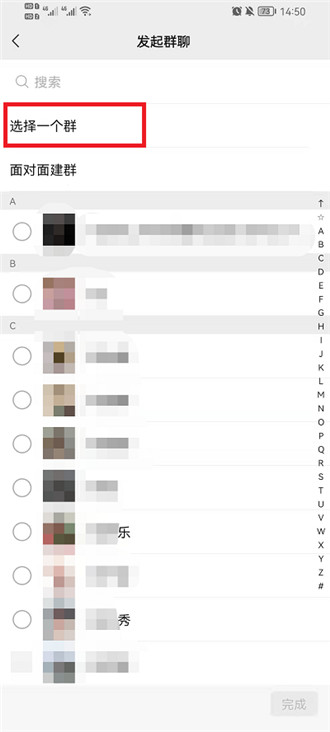 2、在发起群聊功能界面中,用户需要再次点击上方的【选择一个群】进入到该界面;