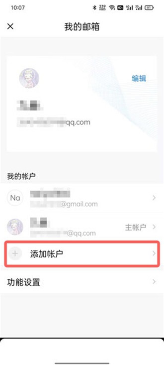 第二步:然后点击下方的【添加账户】,绑定其他邮箱账号(如图所示);
