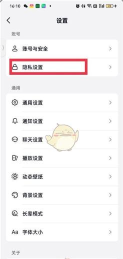 3、进入到设置页面之后的点击【隐私设置】;