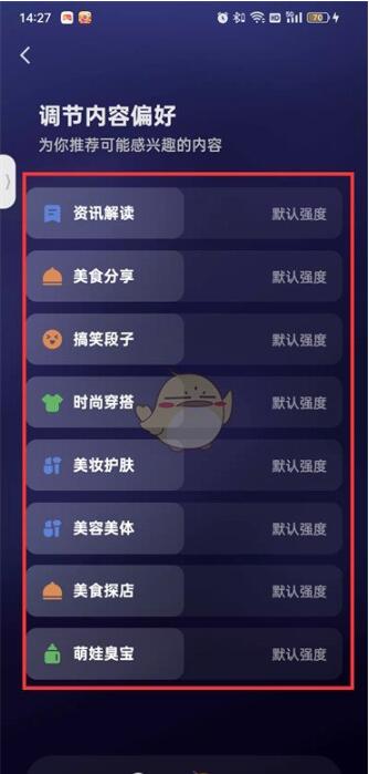 3、进入到内容偏好的页面中点击一个你要设置的爱看类型;