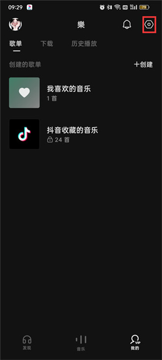 2.来到我的页面中点击右上角的【设置】图标;