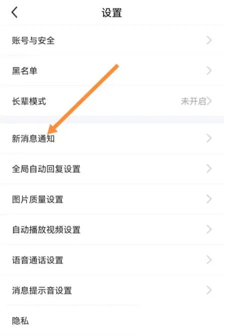 2、然后进入设置页面里选择点击新消息通知。