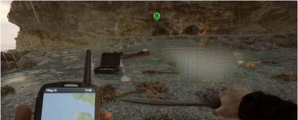 1、尼泊尔刀的位置如下图所示,在靠近海岸的营地帐篷旁可以找到一些资源,距离营地稍远一些的箱子处可以找到这把武器;