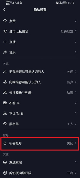 抖音将自己账号设置为私密账号方法
