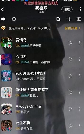 2.最后进入到我喜欢的页面中就可以看到自己喜欢的歌曲了;