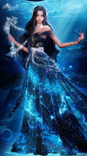 如此原画与实际制作过程中的多番尝试配合,将梦幻绚烂的海洋世界赋予「海谕遥音」。穿上这件礼服裙,愿你被海洋精灵环绕,置身蓝色童话中。
