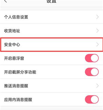 3.来到设置的页面中点击【安全中心】;