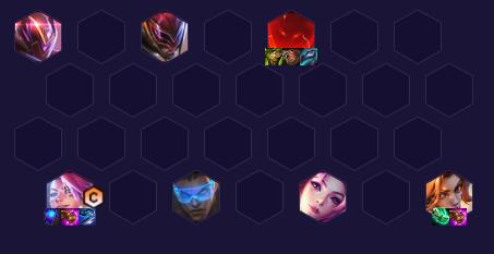 吃到6连败以后,在3-2拉上6级,要保证存款有50左右。本钱充足之后,在6人口大搜一波,挂上卡莎开3超英3射手,优先给EZ追3星,其次是3个超级英雄,卢锡安完全随缘。注意卡莎不要贪3星,除非有黄金门票或其他彩色强化加持。