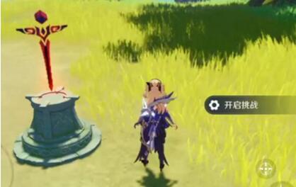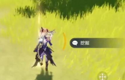 3、接着玩家操作角色落地,落地后可以看见小光柱的标记,靠近小光柱,可以进行触发或者挖掘的操作。