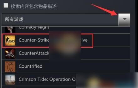 3、在*选项中,点击如图所示的箭头,在下方找到并选中“csgo”