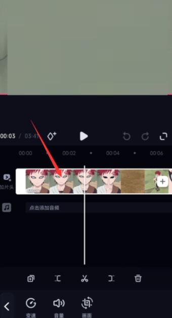 2、然后进入到剪辑视频界面后,点击选中想要分割的视频。