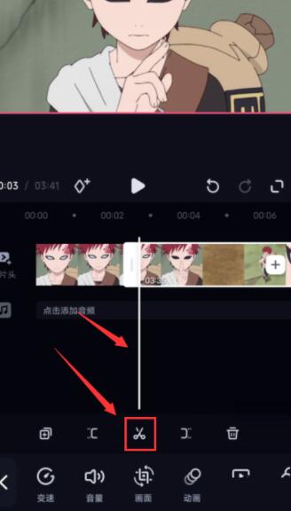 3、最后将光标移到想要分割的位置,点击下方的小剪刀即可完成分割。