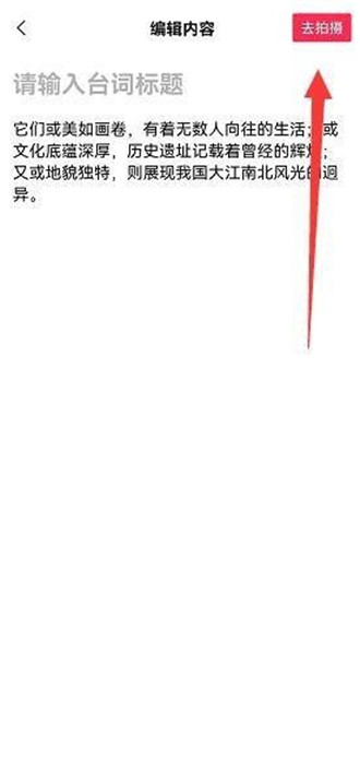 3、最后输入台词标题以及内容,点击“去拍摄”即可使用。