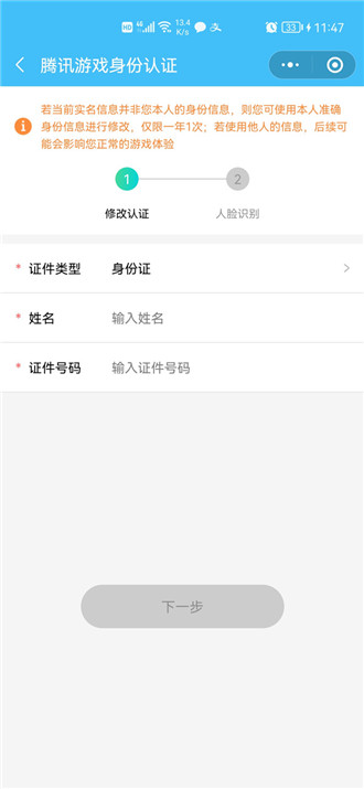 qq实名认证一年可以修改一次,需要在腾讯成长守护微信公众号中申请修改,若使用他人的信息,可能会影响游戏体验。
